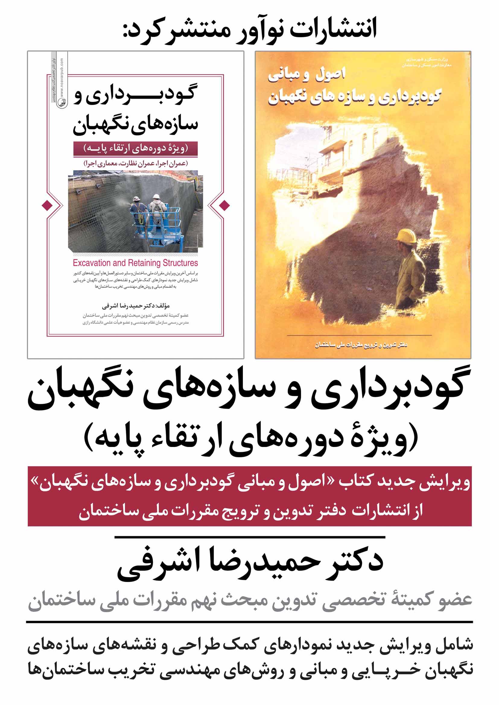 سازه نیوز: کتاب گودبرداری و سازه های نگهبان(ویژه ارتقا پایه) تالیف حمیدرضا اشرفی منتشر شد.