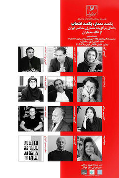 نشست دهم از سلسله نشستهای یکصد معمار، یکصد انتخاب که با حضور لیلی گلستان، سیروس بزرگگرایلی، آرش بصیرت، سامان سیار، سهیلا صادقزاده، فرزانه عطاء اللهی، محمدمنصور فلامکی، محمد مجیدی، مینا معرفت و یوسف نیلی برگزار میشود علاوه بر معرفی بناهای برگزیده معماری توسط اعضا به ارایه گزارشی مختصر از نشست نهم نیز اختصاص خواهد یافت.
