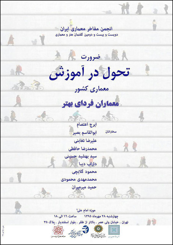 ضرورت تحول در آموزش معماری کشور با شعار معماران فردای بهتر در دویست و بیست و دومین گفتمان هنر و معماری توسط انجمن مفاخر معماری ایران برگزار میشود.