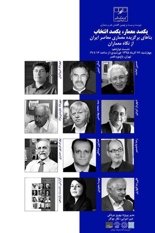 دویست و بیست و نهمین گفتمان هنر و معماری به نشست دوازدهم یکصد معمار، یکصد انتخاب؛ بناهای برگزیده معماری معاصر ایران از نگاه معماران اختصاص دارد.