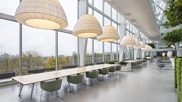 در اتاقهای کنفرانس، استیکر کد QR قرار دارد که به افراد اجازه میدهد از طریق تلفن همراه خود شرایط اتاق را کنترل کنند. برای مثال این امکان برای آنها وجود دارد که صفحه نمایش 4K را روشن کنند تا مطلب خود را ارائه دهند، نور اتاق را کم و زیاد کنند، دمای اتاق را تنظیم کنند و حتی پردهی پنجره را بالا و پایین بکشند. با این حال هیچ شکی نیست که این ساختمان با وجود امکانات هوشمند، نسبت به محیط زیست مهربان بوده است.