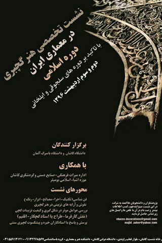 نشست تخصصی هنر گچبری در معماری ایران دوره اسلامی با تاکید بر دورههای سلجوقی و ایلخانی، با همکاری دانشگاه کاشان و دانشگاه بامبرگ آلمان، دوم و سوم اردیبهشتماه در شهر کاشان برگزار میشود.