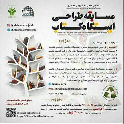 انجمن علمي دانشجويي معماري موسسه آموزش عالي جهاددانشگاهي خوزستان مسابقه طراحي ايستگاه كتب درسي برگزار ميكند