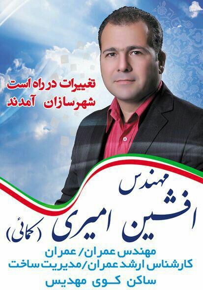 افشین امیری کمایی ،متولد 1351 اهواز در حال حاضر مسئول متره و برآورد پروژه های عمرانی وخدماتی شهرداری منطقه یک اهواز است