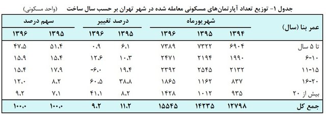 واحدهای کمتر از ۵ سال ساخت سهم ۴۷.۵ درصدی را از کل معاملات به اختصاص اختصاص داده و واحدهای دارای قدمت بیش از ۱۱ سال جمعا ۳۶.۶ درصد معاملات را در بر می گیرد. اما نکته اینجاست که سهم واحدهای ۱۶ سال به بالا از نظر تعداد معاملات جهش ۱۰۲ درصدی را تجربه کرده است.