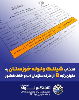 به گزارشسازه نیوز وبه نقل از روابط عمومی شرکت شیلنگ و لوله خوزستان ، بر اساس اعلام سازمان آب و خاک کشور ،شرکت شیلنگ و لوله خوزستان موفق به کسب عنوان رتبه B از طرف این سازمان شده است