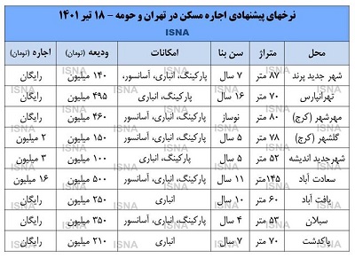 همانطور که گفته شد ارقام مذکور، میانگین نرخ اجاره در شهر تهران را نشان میدهد اما اجاره بها در مناطق شمالی و حتی میانی شهر تهران بیش از این مقدار است و بعضا تا دو برابر اعداد فوق میرسد.