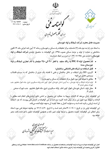 شرکت شیلنگ و لوله خوزستان گواهینامه فنی لوله های فاضلاب ساختمان را دریافت کرد
